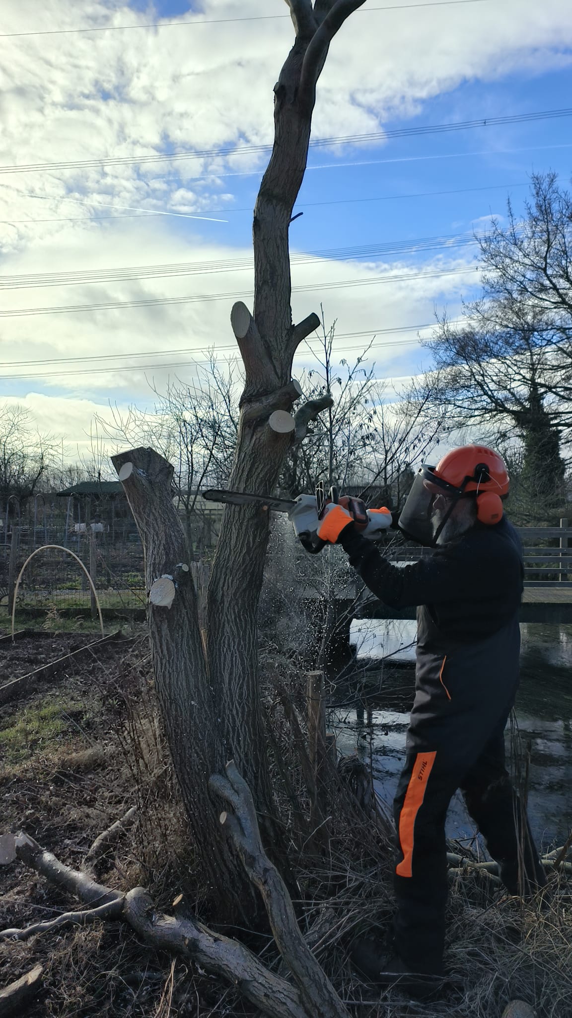 Kala, Alex, Thijs en Hans hebben de cursus Veilig werken gevolgd. Zij hebben hard gewerkt onder toeziend oog van instructeur Rob. Ze zijn nu bevoegd om met de kettingzaag, hakselaar en bosmaaier te werken.