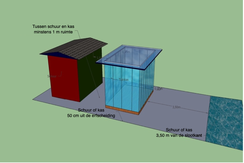 - Afstand van een bouwsel tot de sloot min. 3,50m